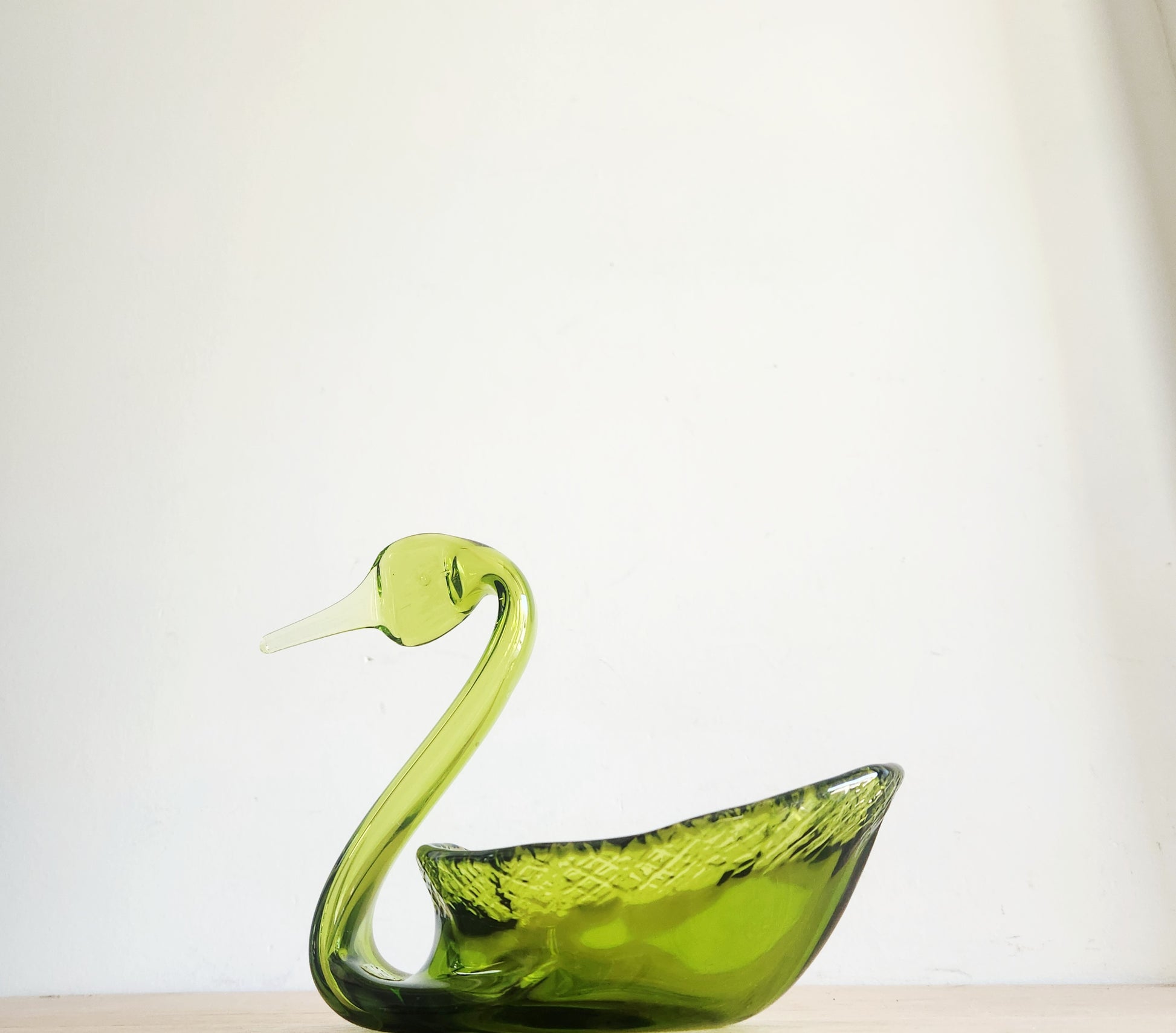 Vintage Avocado Green Viking Glass Swan Trinket Dish
