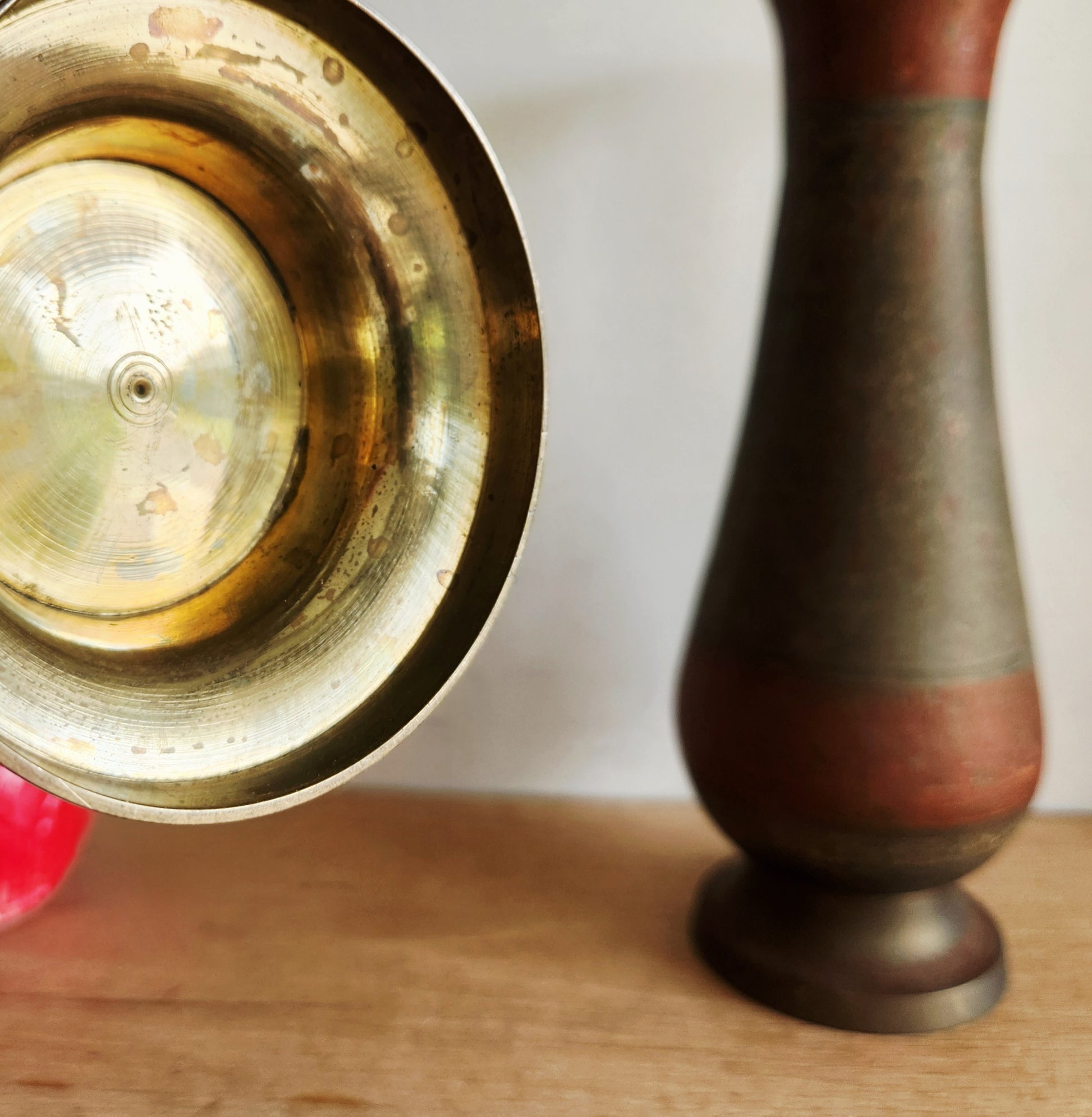 Vintage Heavy Brass Vases Etched 12"Set of 2