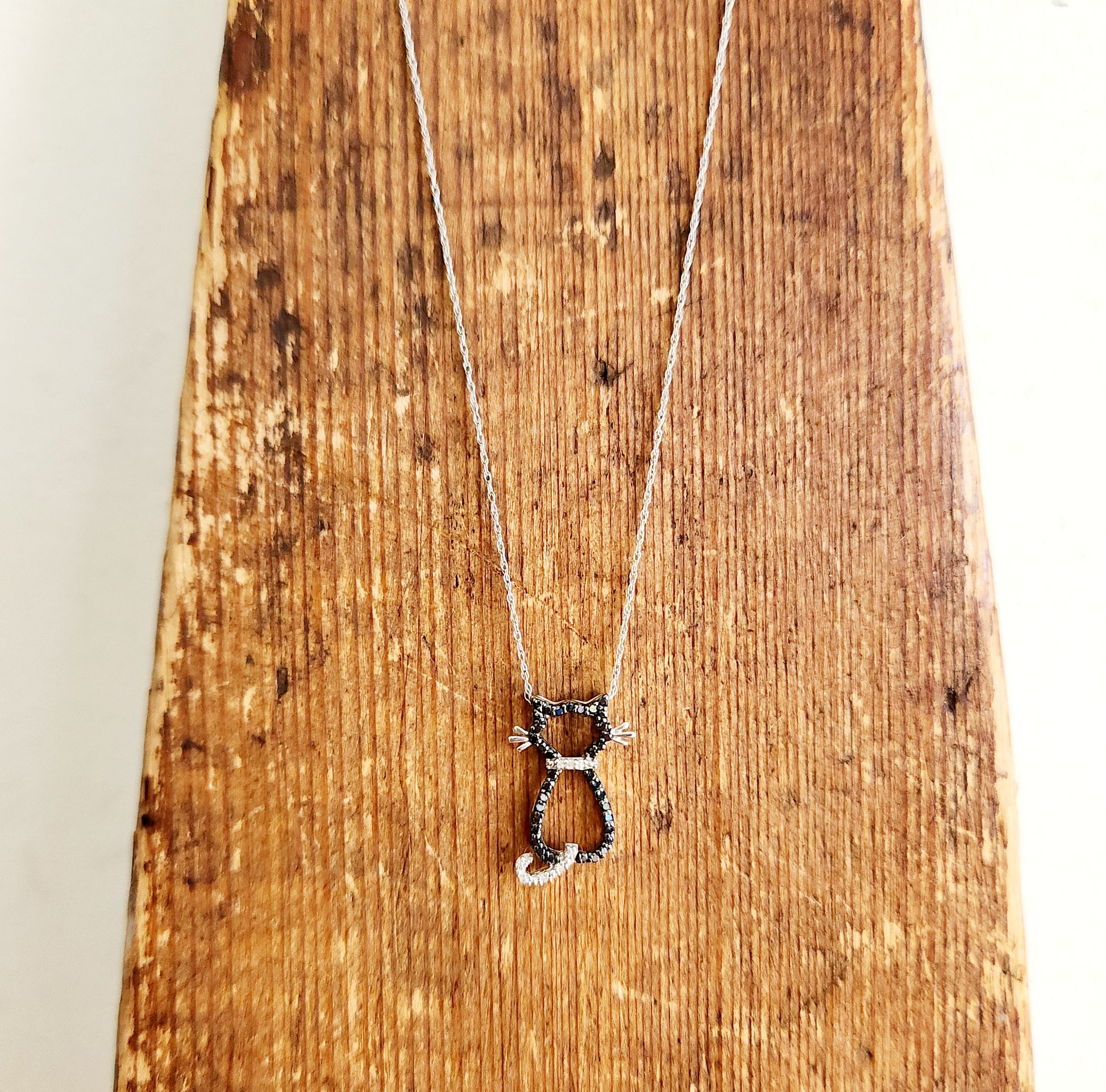 10K Gold Chain with 10K Gold & Sparkle Cat Pendant