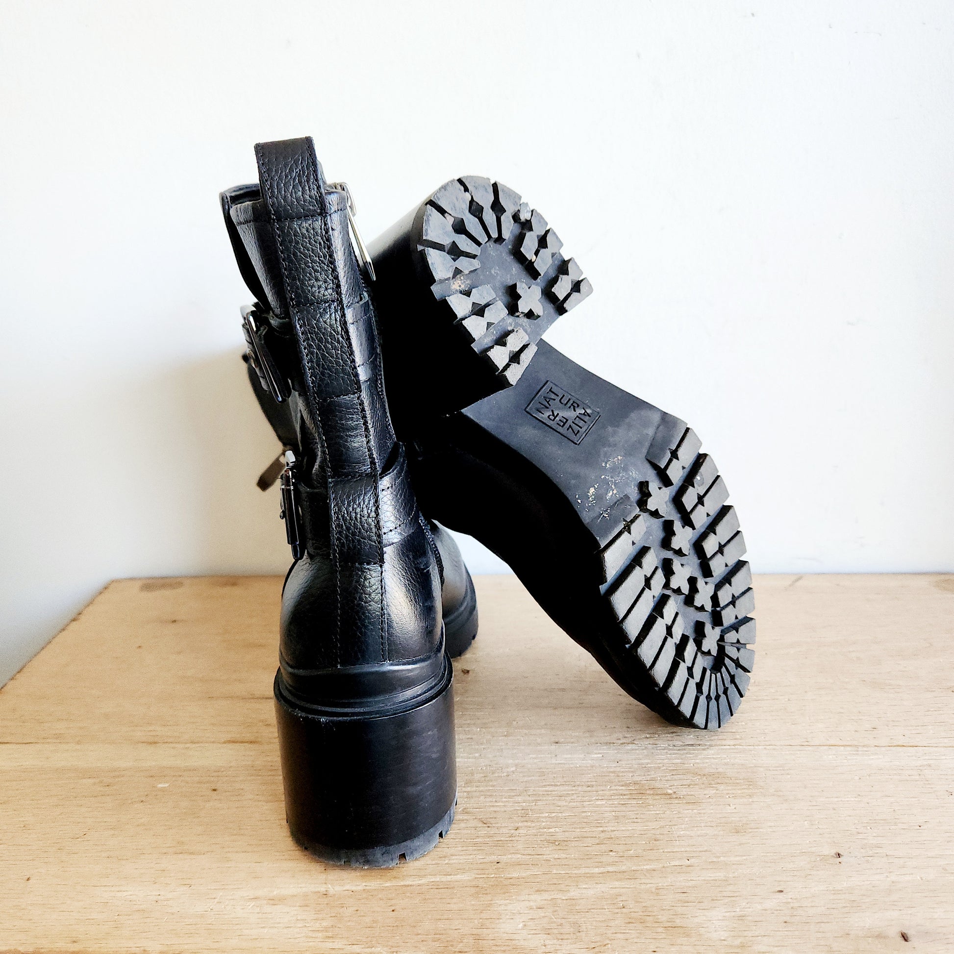 Naturalizer Black Leather Heeled Boots with Buckles - size 7.5